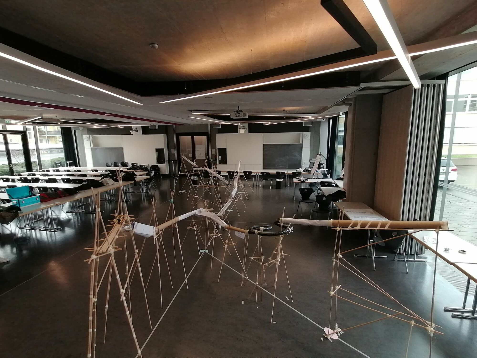Ziel ist es, mit den bereitgestellten Materialien in Teamarbeit eine freistehende und funktionierende Kugelbahn zu realisieren.