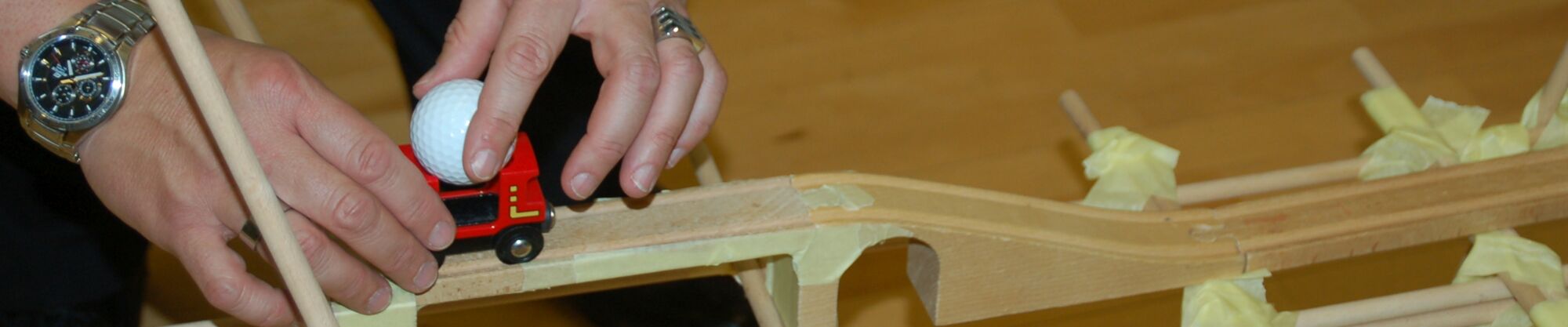 Beim Kugelbahnbau gestalten alle Teilnehmenden in rund 2–3 Stunden gemeinsam eine kreative, funktionierende Kugelbahn.